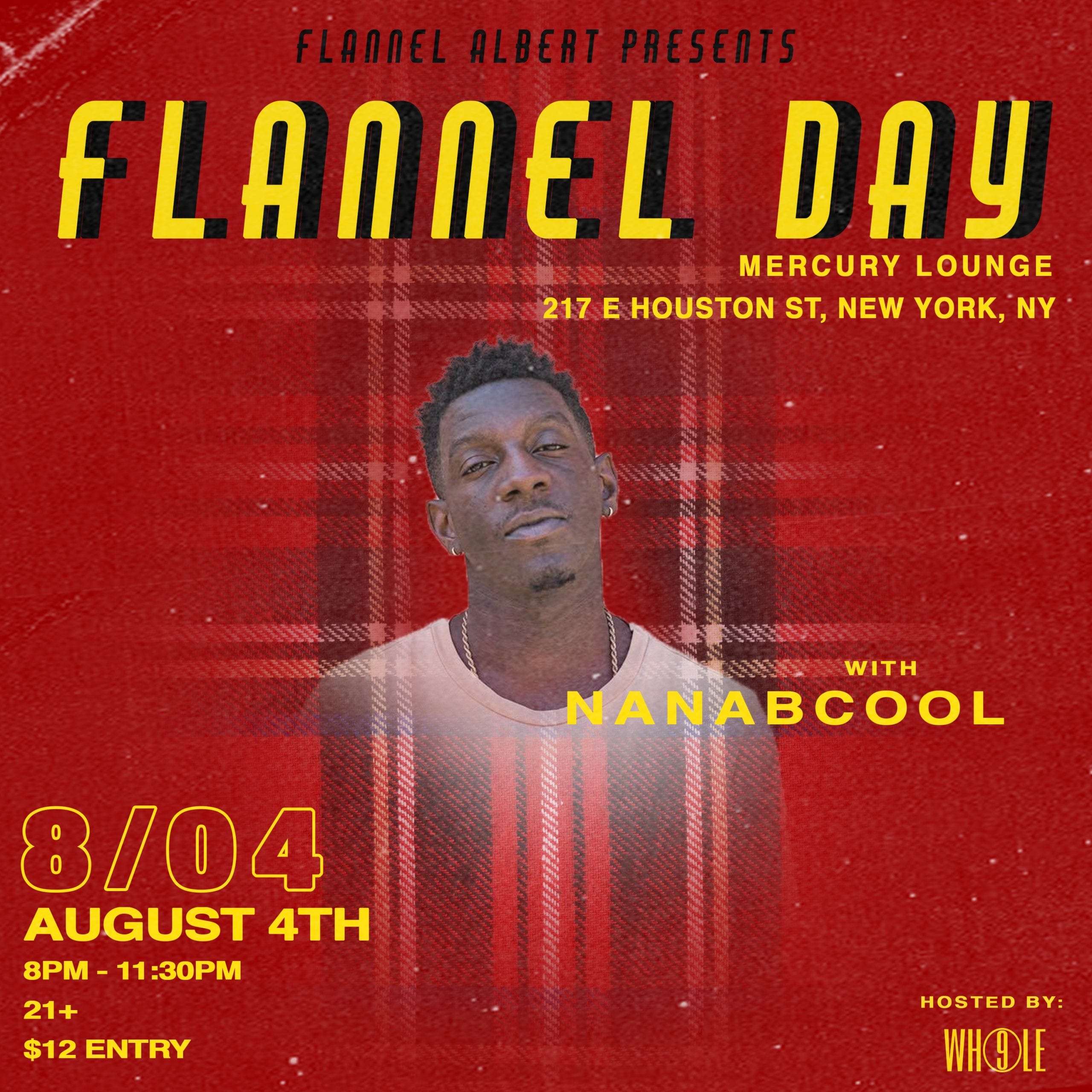 I’d heard a lot about NanaBCool. He’s pretty well known in the NY music scene and rightfully so. We formally met at the Alumni store opening in Flushing, and I let him know I was a fan. His whole R&B/rap fusion is right up my alley, so I asked him to be a part of FLANNEL DAY and he was down. I think we ended up going out later that night and someone puked on his shoes.